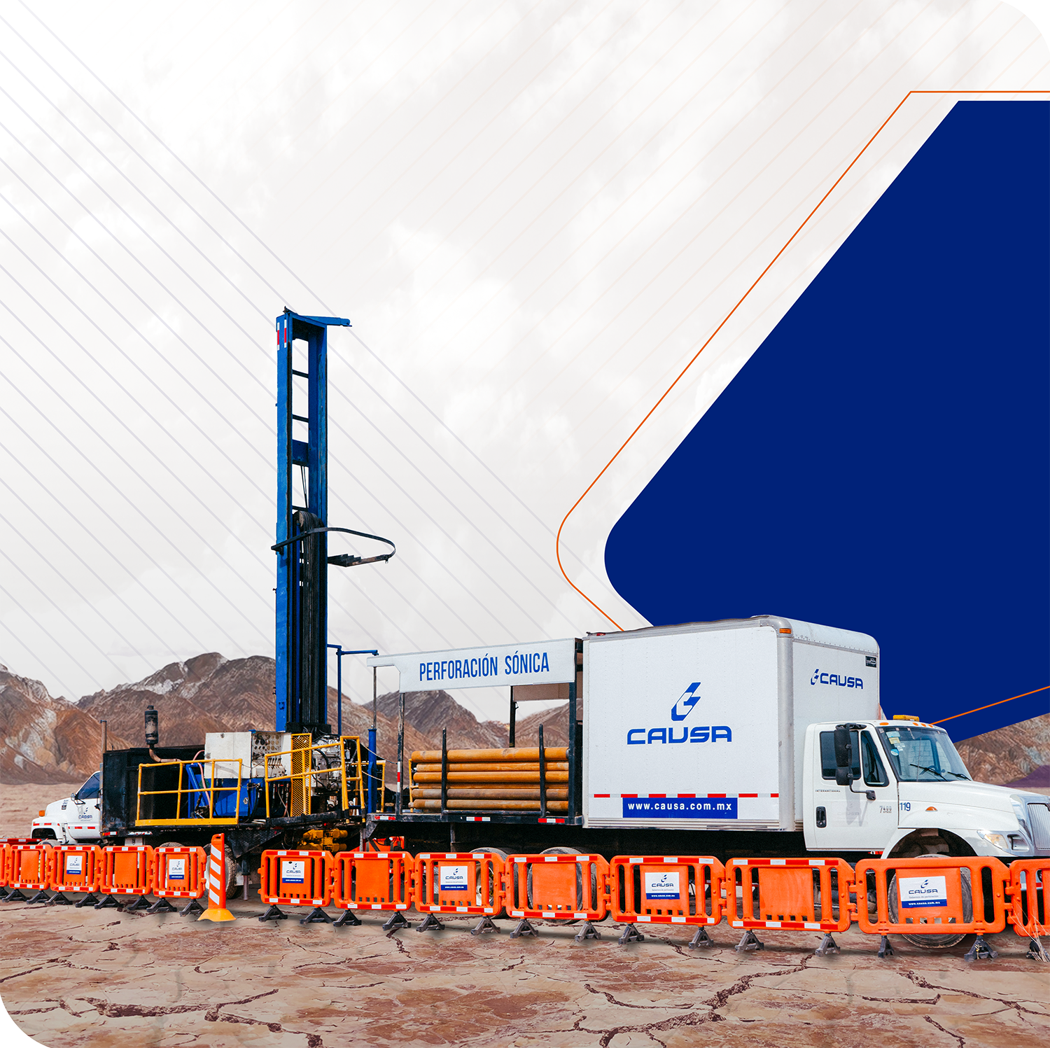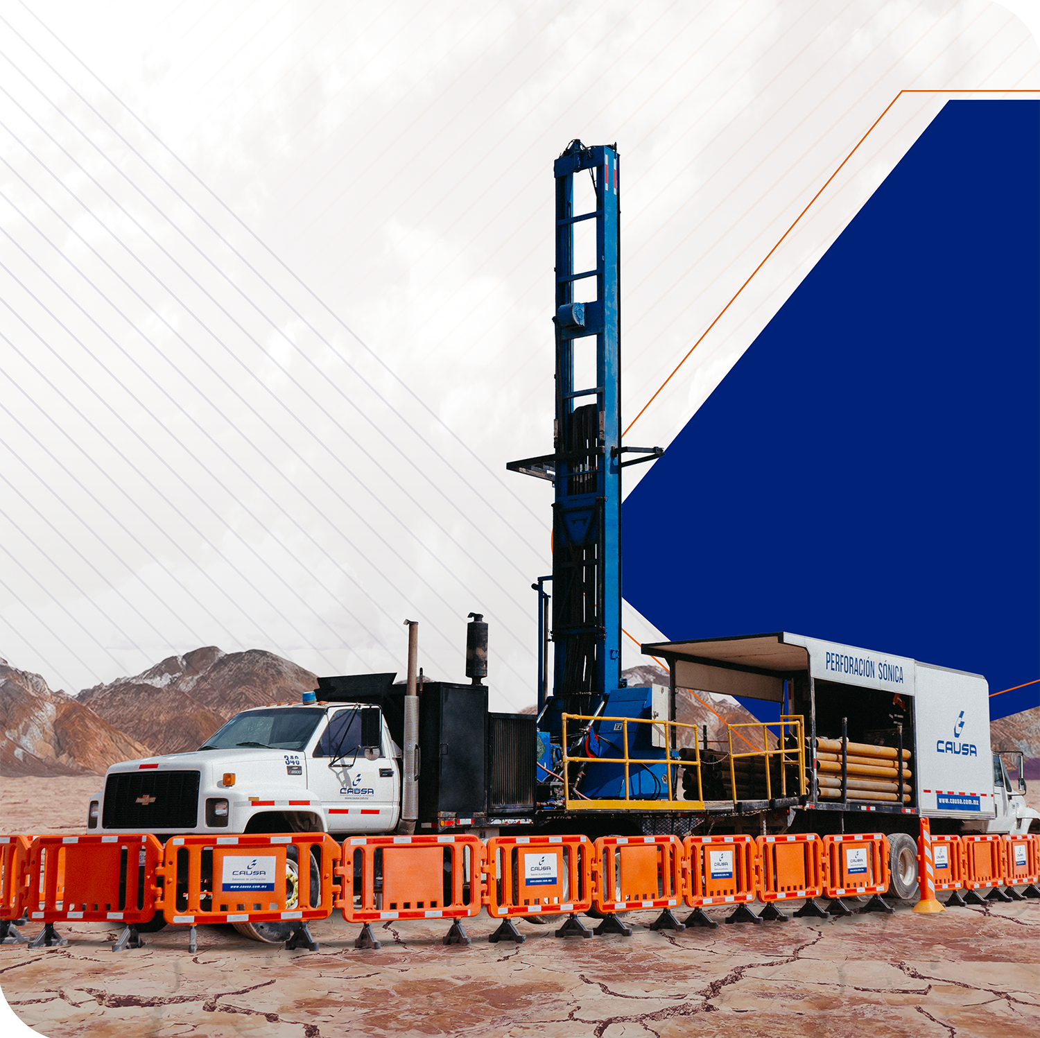 Uno de nuestros servicios es la perforación sónica, nueva tecnología para la exploración geológica de depósitos de minerales de poca profundidad y en rocas de dureza media.